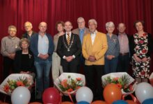 Carnavalsdoek ‘De Lange Pier’ hangt weer aan het gemeentehuis van Berg en Dal