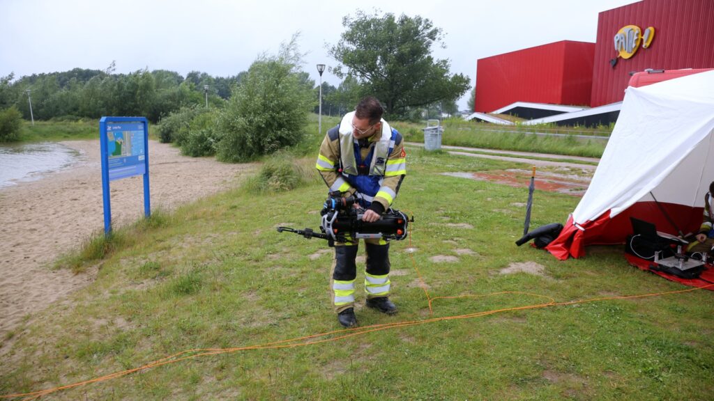NIJMEGEN – De brandweer Gelderland-Zuid test sinds kort onderwaterdrones om drenkelingen op te sporen. Deze propeller aangedreven vaartuigen, uitgerust met sonar en camera’s, kunnen snel slachtoffers lokaliseren. Maandagmiddag 10 juni demonstreerde de brandweer de drone op een strandje in Lent, waarbij een pop in het water snel werd gevonden.