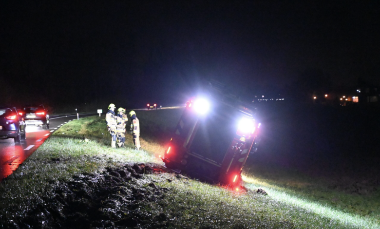 LEUTH – Een brandweerwagen is donderdagavond tijdens een spoedrit van de weg geraakt door nog onbekende oorzaak. De brandweerwagen was onderweg naar een automatische brandmelding bij het Sint Jan de Deo Gasthuis in Millingen aan de Rijn. Echter, tijdens de rit naar de locatie is de brandweerwagen om onverklaarbare redenen van de weg geraakt en vast komen te zitten op een heuvel in een weiland.