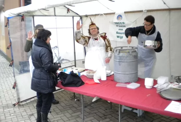 De koks van het Beekse verpleeghuis waren al 25 jaar de leverancier van de carnavals-snert. Creemers vertelt: “Ze kookten al erwtensoep voor de eigen bewoners en maakten er gewoon een grotere hoeveelheid van. Vorig jaar verkochten we nog duizend liter.”