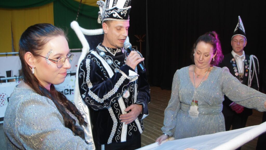 Leuth – Tijdens een sfeervolle en drukbezochte pronkzitting in De Vriendenkring in Leuth is Ricardo Menting op zaterdagavond 18 januari 2025 gepresenteerd als de nieuwe Prins “Ricardo d’n Hendige” van CV de Sokkenummers. Voor een bomvolle zaal nam Ricardo met trots de scepter in handen samen met Hofdames Chantal & Patty en Adjudanten Fabian & Johan.