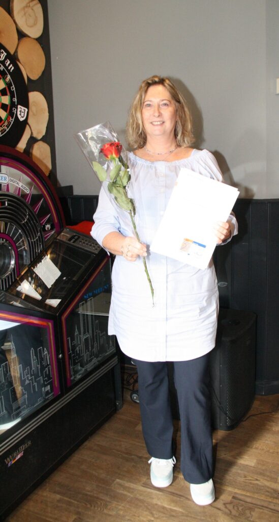 Van de laatste EHBO-basisopleiding waren 5 (van de 6) geslaagde cursisten aanwezig en namen het officiële EHBO-diploma van Het Oranje Kruis en een bloemetje in ontvangst.